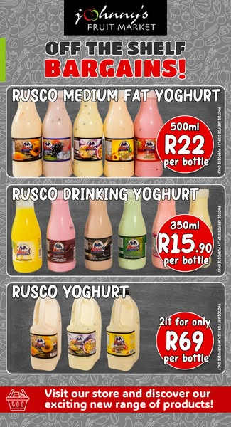 - Rusco Medium Fat Yoghurt > 500ml R22 per bottle