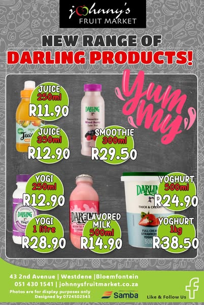 - Yoghurt > 500ml - R24.90 | 1kg - R38.50