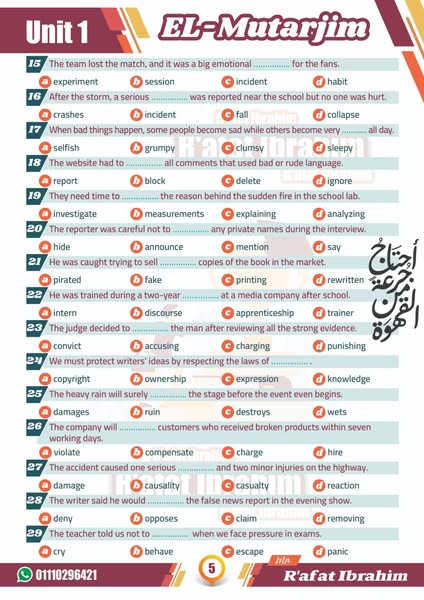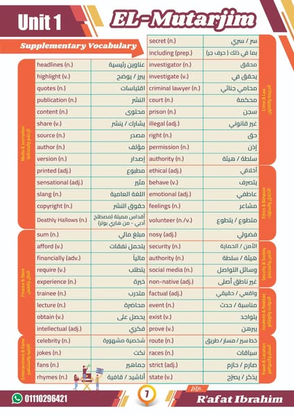 ودى هتخلى الطالب يتقن تعريفات الكلمات على الوحده
