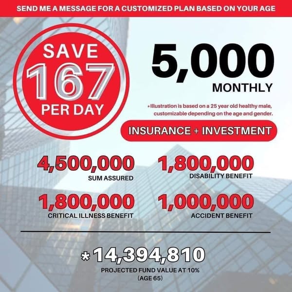 𝗚𝗲𝘁 𝗽𝗿𝗼𝘁𝗲𝗰𝘁𝗲𝗱 𝘄𝗵𝗶𝗹𝗲 𝘀𝗮𝘃𝗶𝗻𝗴 𝗳𝗼𝗿 𝘆𝗼𝘂𝗿 𝗳𝘂𝘁𝘂𝗿𝗲 𝘄𝗶𝘁𝗵 𝗼𝘂𝗿 𝟱-𝗜𝗡-𝟭 𝗜𝗡𝗦𝗨𝗥𝗔𝗩𝗘𝗦𝗧 𝗽𝗹𝗮𝗻, 𝗳𝗼𝗿 𝗮𝘀 𝗹𝗼𝘄 𝗮𝘀 𝟏𝟎𝟎 𝗽𝗲𝘀𝗼𝘀 𝗽𝗲𝗿 𝗱𝗮𝘆!