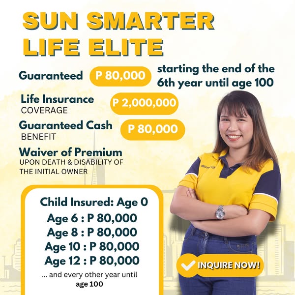 ✨𝑺𝑼𝑵 𝑺𝑴𝑨𝑹𝑻𝑬𝑹 𝑳𝑰𝑭𝑬 𝑬𝑳𝑰𝑻𝑬 - is a 10 years to pay plan with a lifetime guaranteed cash value starting from the 6th year of policy, and every 2 years until age 100.