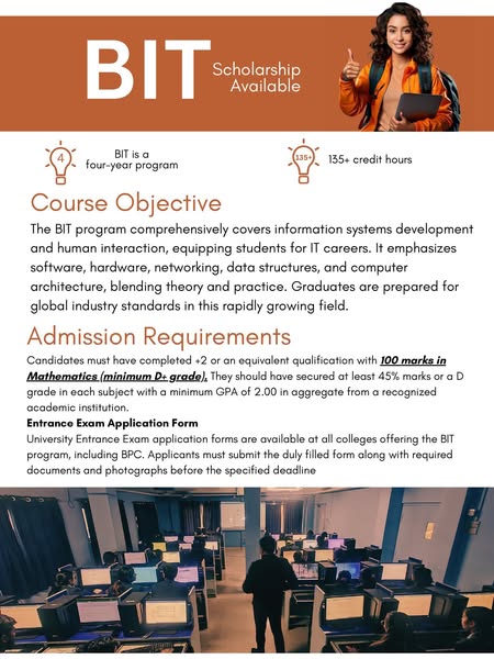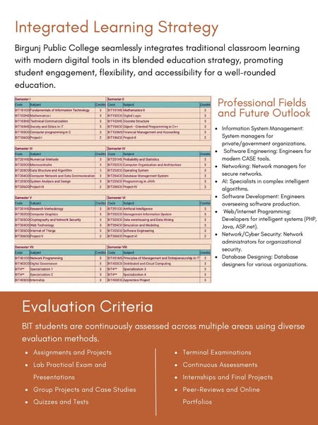 Birgunj Public College proudly presents the Bachelor of Information Technology (BIT) program under Purbanchal University! 🎓💻