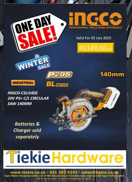 搜索关键词 INGCO tools sale, power tools deals, hardware discounts, one day special, electric screwdriver, cordless drill, reciprocating saw, circular saw, chainsaw price, Tiekie Hardware优势 Discounted Prices,Wide Range of Tools,One-Day Only Specials