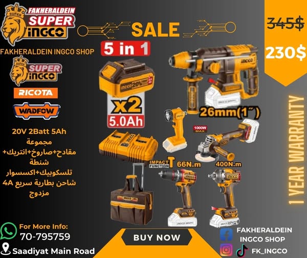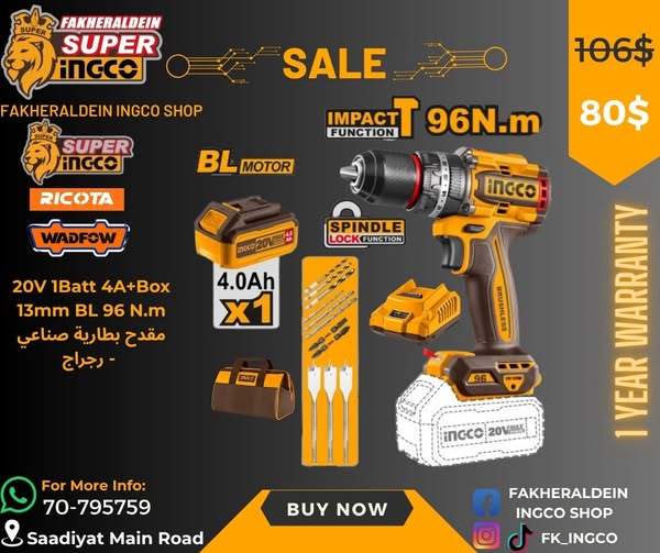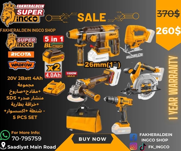 搜索关键词 INGCO tools, power tools, tool warranty, Lebanon tools, affordable tools, quality tools, tools delivery, FAKHERALDEIN INGCO, tool sale, Saadiyat tools优势 Warranty Included,Competitive Prices,High Quality,Fast Delivery