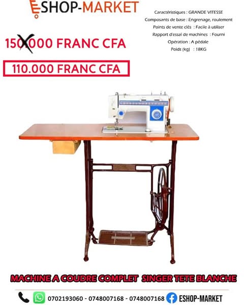 Vous avez également besoin de vous procurer les pièces séparément tel que le moteur, la tête de la machine à coudre ou encore simplement sa table ? Vous êtes débutant ou expérimenté. Découvrez toutes nos offres avec les meilleurs prix chez Eshop-Market ‼️