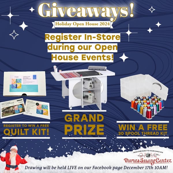 搜索关键词 holiday open house, sewing deals, tsc greenup, babylock machines, local sewing shop, christmas giveaway, grand prize drawing, sewing fun, sewing accessories, december deals优势 Incredible Deals,Exciting Giveaways,Grand Prize Giveaway,Holiday Festivities