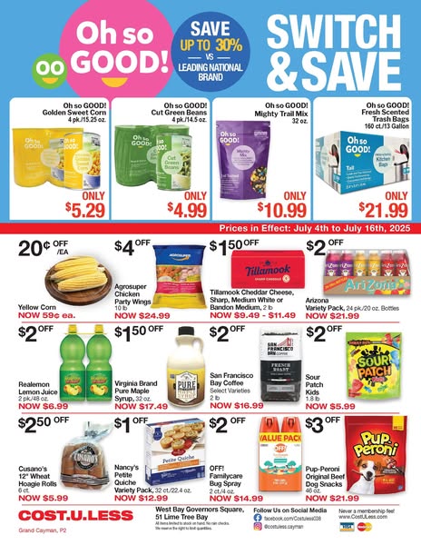 🛍 Switch & Save on Oh so GOOD! brand products, exclusively available at Cost.U.Less!