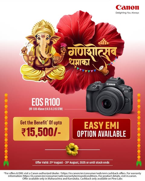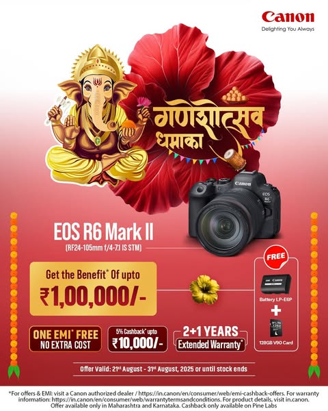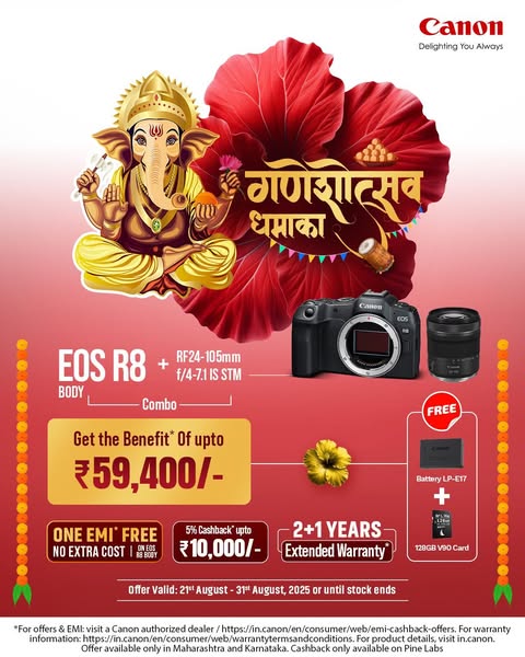 Upgrade to the EOS R series this Ganeshotsav! Enjoy cashback, freebies & extended warranty. Limited-time festive offer.