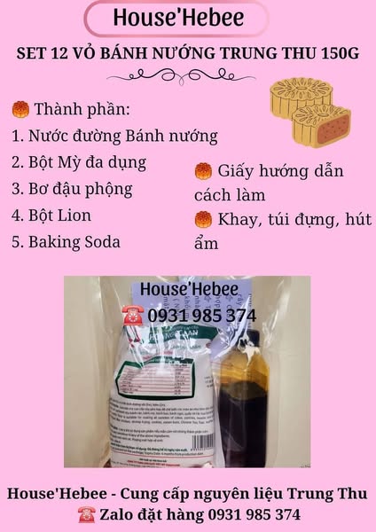 搜索关键词 mooncake baking, DIY mooncake, Hebee ingredients, trung thu kit, homemade mooncake, baking supplies, Vietnamese mooncake, mooncake recipe, set nguyen lieu, banh trung thu优势 Easy to use for beginners,Complete ingredient sets available,High-quality ingredients,Detailed instructions and video tutorials,Offer traditional and innovative flavors
