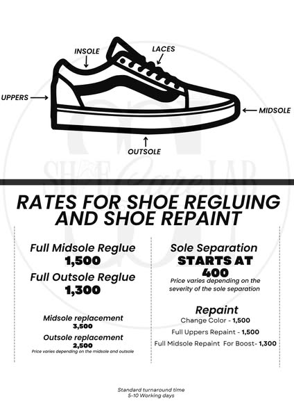 Seat back and relax, Let the Shoe Care Lab do the work, at a very affordable price, From 𝐏𝐢𝐜𝐤𝐮𝐩 to 𝐂𝐥𝐞𝐚𝐧𝐢𝐧𝐠, 𝐑𝐞𝐠𝐥𝐮𝐢𝐧𝐠, 𝗥𝗲𝗽𝗮𝗶𝗻𝘁𝗶𝗻𝗴 and 𝐃𝐞𝐥𝐢𝐯𝐞𝐫𝐲, Kami na ang bahala mag ayos niyan.