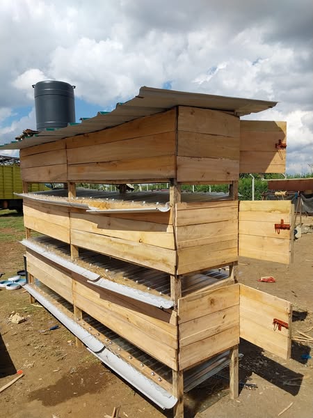 搜索关键词 rabbit hutch, rabbit housing, organic farming, rabbit breeders, Kiserian farm, livestock equipment, self-cleaning hutch, Kenya agriculture, rabbit urine, manure collection优势 Efficient waste collection for garden use,Self-cleaning floors,Includes accessories (feeder pots, hay racks, nesting boxes, automatic drinkers)