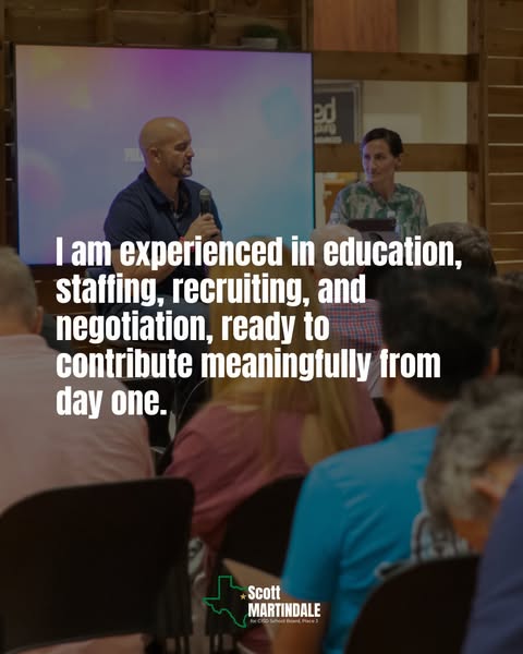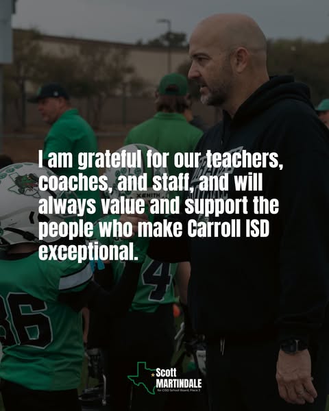 I’m Scott Martindale, and I’m running for Carroll ISD School Board because I believe our district deserves focused, principled leadership at this critical time.