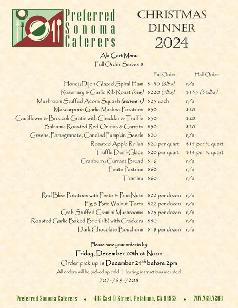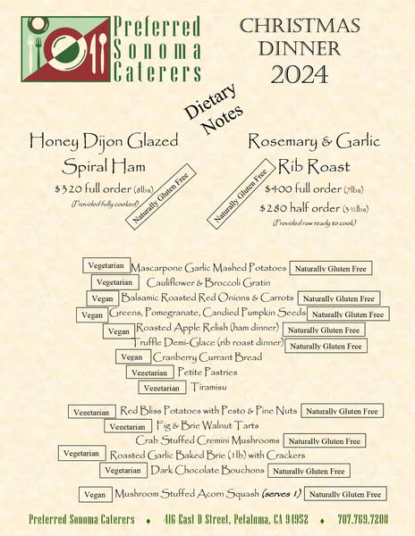 搜索关键词 Christmas catering, holiday catering services, Sonoma caterers, party catering, christmas party, christmas specials, catering specials, corporate christmas party, event caterer, holiday food优势 Convenience,High-Quality Food,Festive Menu Options