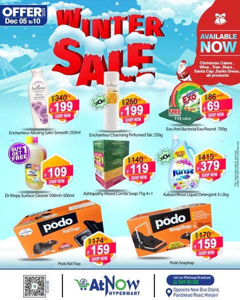 搜索关键词 Winter Sale, Hypermarket Deals, Discount Shopping, Groceries Sale, Household Items, Save Money, Manjeri Shopping, NOW Hypermarket, Best Prices, Christmas Sale优势 Discounted Prices,Wide Product Selection,Opportunity to Save Money