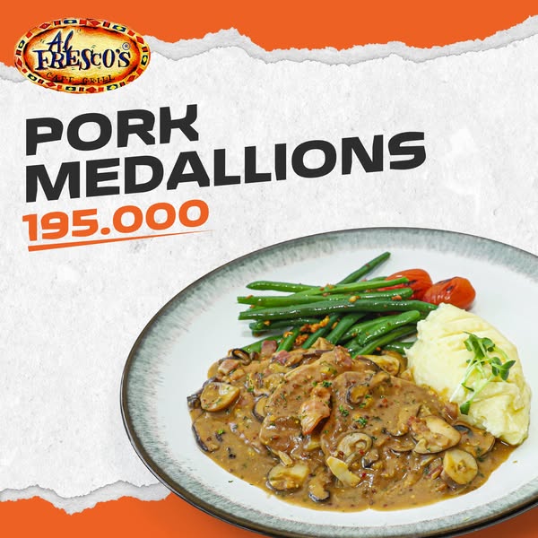 🥩𝐏𝐎𝐑𝐊 𝐌𝐄𝐃𝐀𝐋𝐋𝐈𝐎𝐍𝐒: Miếng thịt thăn lợn mọng nước, áp chảo mềm mọng, được phủ lên lớp xốt kem nấm sánh mịn, thơm ngất ngây, khiến bạn ăn một lần là nhớ mãi.