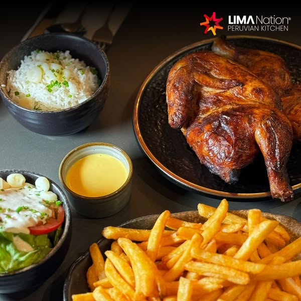 🔥 Pollo a la Brasa: Choose from 3 irresistible options, all served with golden fries, fresh salad, and our signature ají de pollería sauce!