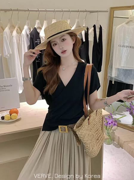 เสื้อไหมพรมผ้าป้ายคอวี ปล่อยชายผ้าด้านหน้า ด้านหลังเป็นเชือกผูก ผ้าไหมพรมเนื้อนิ่ม ใส่สวยมากๆ