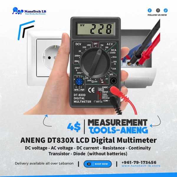 #NanoTechLB #IndustrialTools #Electronics #ACDC #Clampmeters #Multimeters #ElectricityTesters #ResistanceTesters #BatteryTesters #ToolsOfTheTrade #QualityTools #TechSolutions #Lebanon #WorkshopEssentials #ProfessionalTools #humidifier #LaserDistanceMeter #ClampMeter #multimeter