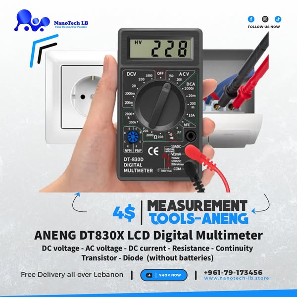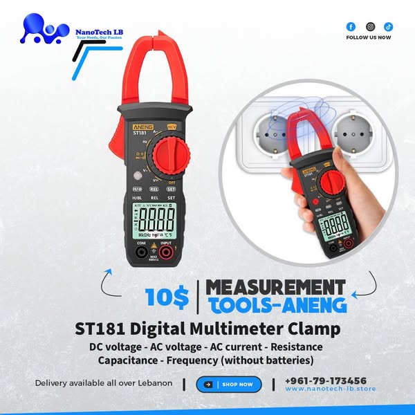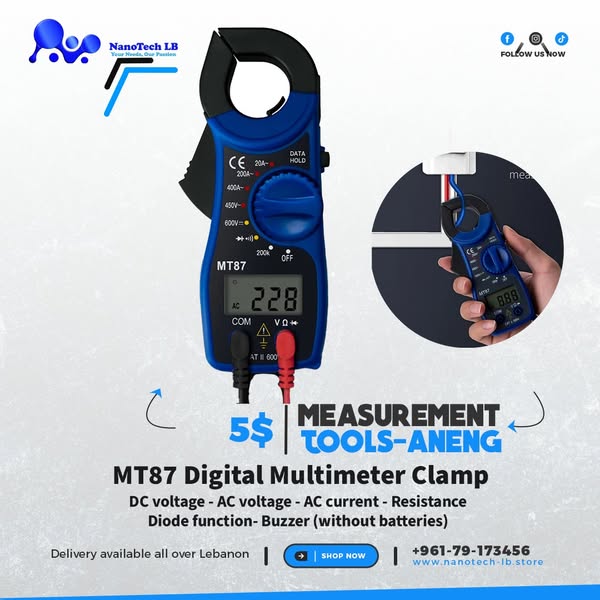 #NanoTechLB #IndustrialTools #Electronics #ACDC #Clampmeters #Multimeters #ElectricityTesters #ResistanceTesters #BatteryTesters #ToolsOfTheTrade #QualityTools #TechSolutions #Lebanon #WorkshopEssentials #ProfessionalTools #humidifier #LaserDistanceMeter #ClampMeter #multimeter