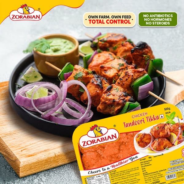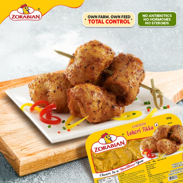 搜索关键词 zorabian's tikkas, pahadi tikkas, antibiotic free, hormone free, pre marinated chicken, easy to cook, bbq skewers, biosecure farms, tender chicken, consistent quality优势 Antibiotic- and hormone-free,Sourced from biosecure farms,Pre-marinated,Tender and Easy-to-cook,Versatile cooking methods,Consistent Quality,40+ years farm expertise