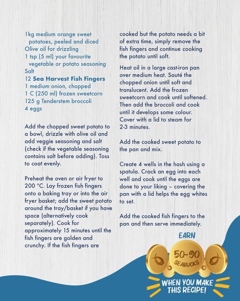搜索关键词 sweet potato, fish fingers, breakfast hash, healthy breakfast, quick meal, tasty food, comfort food, easy recipe, family breakfast, satisfying meal优势 Healthy Twist on Comfort Food,Quick to Make,Packed with Flavor,Satisfying