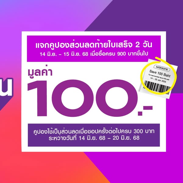 รับคูปองท้ายใบเสร็จมูลค่า 100.- 💥เมื่อชอปสินค้าครบ 900.- ขึ้นไปต่อใบเสร็จ