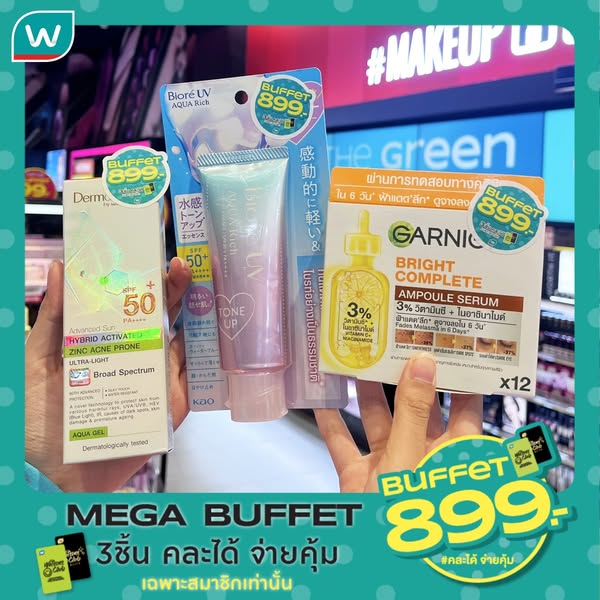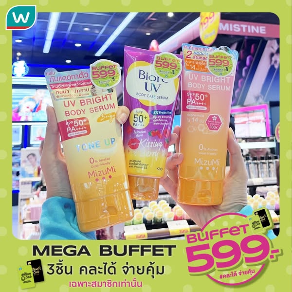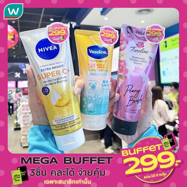 搜索关键词 Watsons Club, MEGA Buffet, cosmetics promotion, personal care discount, Thailand online shopping, Watsons Thailand, beauty products, summer sale, exclusive member offers, shopping deal优势 Exclusive discounts for Watsons Club members,Mix and match products,Available both in-store and online,Additional discounts for first-time app users