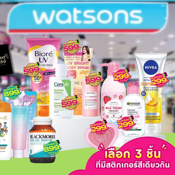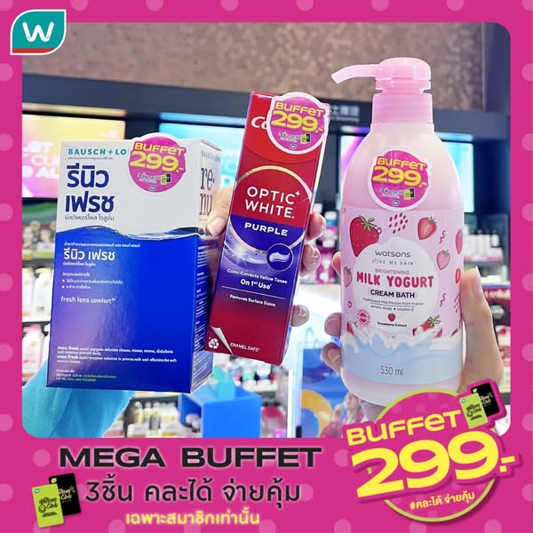 สมาชิกวัตสัน คลับ มีแต่ได้กับได้🥳 ชอป MEGA Buffet 3 ชิ้น คละได้
