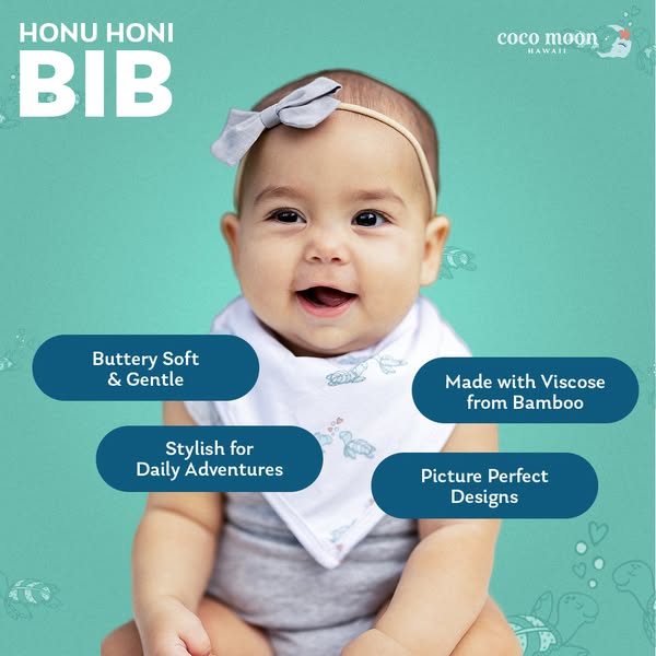 Crafted with love and rooted in the gentle spirit of Hawai‘i’s honu (sea turtle), the Honu Honi collection from Coco Moon Hawai‘i blends exceptional comfort with durable quality. Every item—from bibs to swaddles, gowns to towels—is made with buttery soft viscose from bamboo, ensuring it feels delicate on baby’s skin while holding its shape and vibrancy over time. Whether you’re tackling spit-ups or savoring sleepy snuggles, Honu Honi is made to last through every cuddle, every wash, every moment. New parents especially love how it supports sensitive skin, resists wear and tear, and stays photo-ready for years to come. 🌊🐢