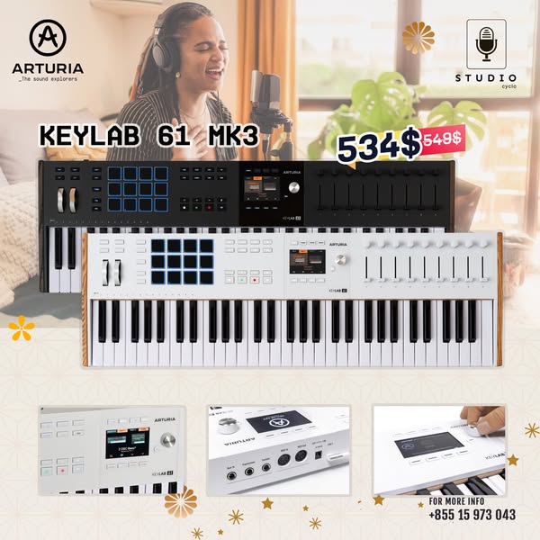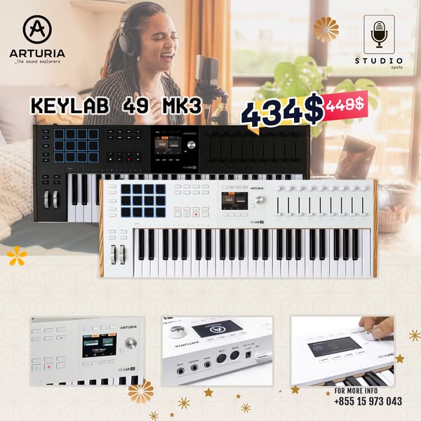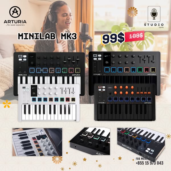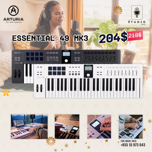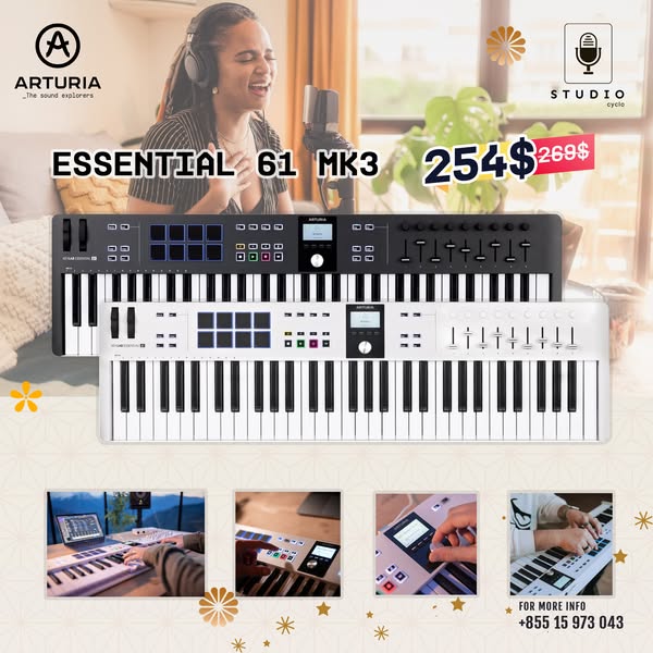 搜索关键词 Arturia Midi Keyboard, Music production Cambodia, Studio gear for musicians, Midi controller price, Velocity sensitive keyboard, Music plugins bundle, CycloStudio music store, Cambodia music scene, Affordable music gear, Music producer tools优势 Quality build,Affordable price,Velocity-sensitive keys,Includes music production plugins