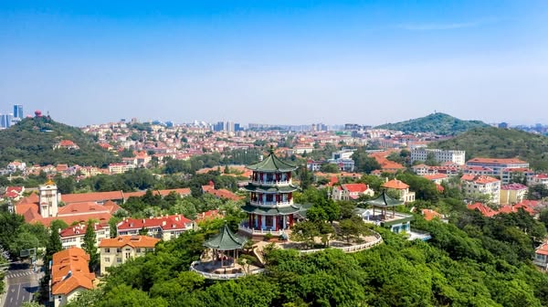 搜索关键词 Taiping Mountain Cableway, Qingdao tourism, Shandong sightseeing, cableway tour, A Little Red Flower movie, China travel, coastal city views, aerial sightseeing, Badaguan Scenic Area, Zhongshan Park优势 Unique perspective of Qingdao,Connects multiple attractions,Featured in popular movie "A Little Red Flower",Stunning visual material