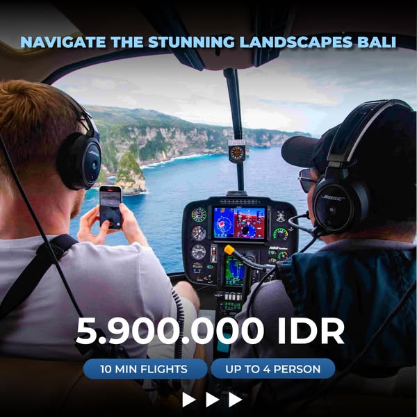 Explore a high-class way of travel around Bali. Helicopter sky-tours over the most unbealivable landscapes of the island