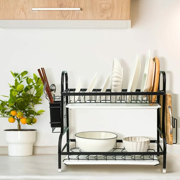 Introducing the 2-Layer Kitchen Rack — the perfect solution to save space and keep your kitchen neat and accessible.