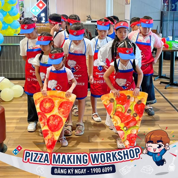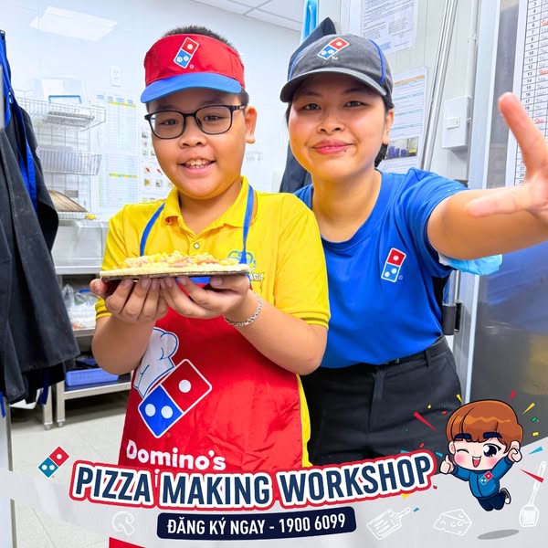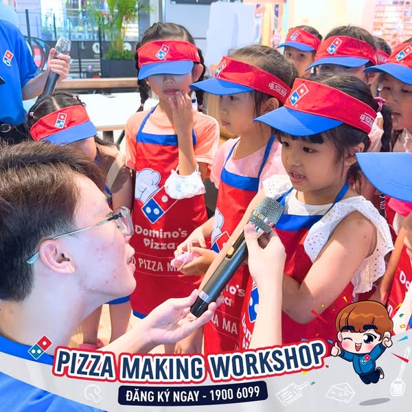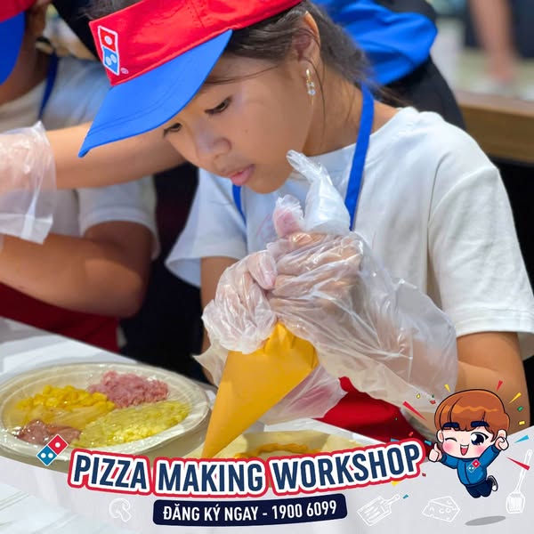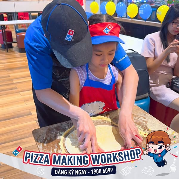 搜索关键词 Domino's Pizza, pizza workshop, kids activities, cooking class, summer program, Vietnam family fun, children entertainment, pizza making class, food education, pizza party优势 Hands-on pizza making experience for kids,Includes all materials and equipment,Provides a fun and educational activity,Offers certificate and badge upon completion,Opportunity to socialize and make new friends