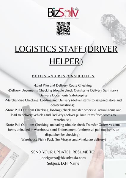 Warehouse Assistant (Eastwood. Libis, Quezon City)