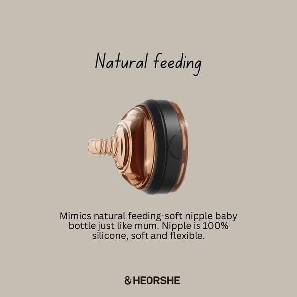 ✨Dust proof cap design, mimics natural feeding soft nipple baby bottle just like mum feeding for baby
