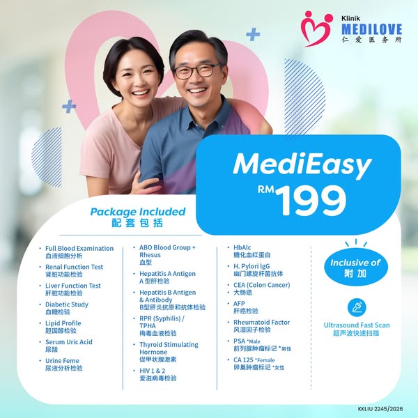 搜索关键词 health screening, tax rebate, Malaysia health, preventive healthcare, early detection, affordable health checkup, medical checkup, wellness promotion, proactive health, disease prevention优势 Early disease detection,Tax rebate up to RM 1,000,Affordable packages (starting from RM 199),Proactive health management