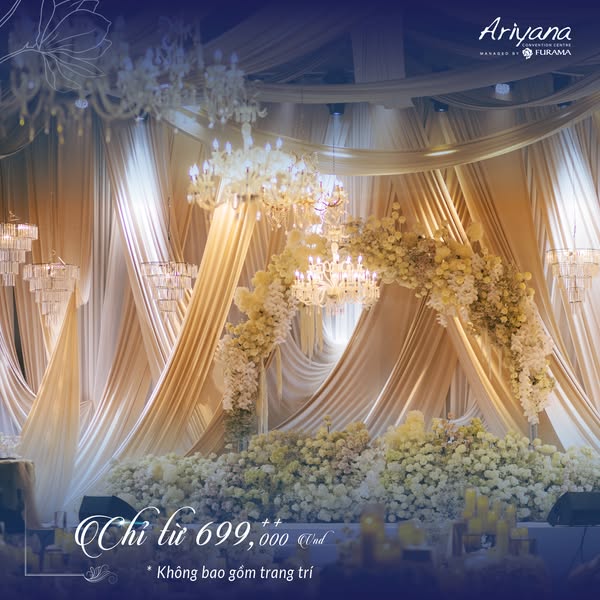 搜索关键词 Danang wedding venue, wedding package, Ariyana Convention Centre, Furama Resort Danang, beach wedding, luxury wedding, Vietnam wedding, destination wedding, oceanfront wedding, wedding promotion优势 Luxurious Venue,Affordable Price (starting from 699,000 VND/guest),Complimentary Honeymoon Suite,Professional Sound & Lighting,Oceanfront Garden