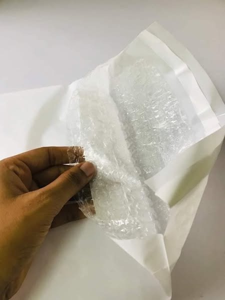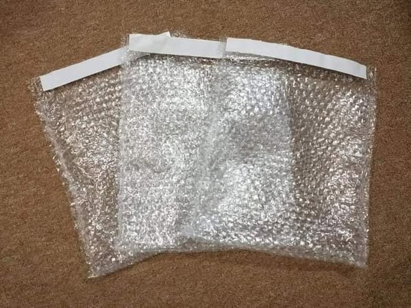 Bubble wrap is a pliable, transparent plastic material for packing fragile items.