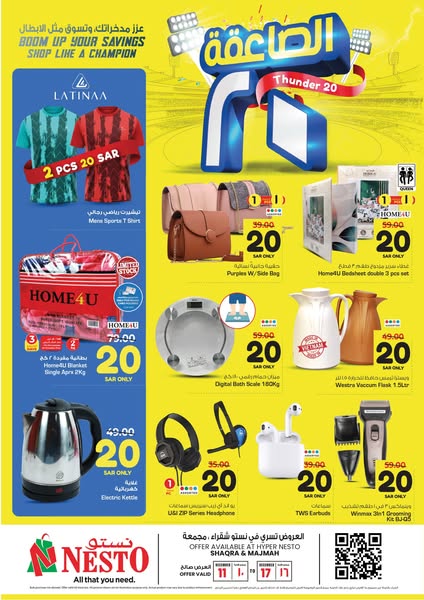 搜索关键词 Nesto Hypermarket, Thunder 20 Deals, KSA Deals, Mega Savings, Big Discounts, Saudi Arabia, Supermarket Promotion, Limited Time Offer, Shop Smart, Save Big优势 Amazing Discounts,Mega Savings,Limited Time Offer