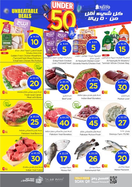 搜索关键词 Nesto Hypermarket offers, best hypermarket deals, Riyadh supermarket, discount shopping, under SAR 50, grocery deals, weekly promotion, Shaqra Majmah优势 Unbeatable deals under SAR 50,Wide range of products,Multiple locations