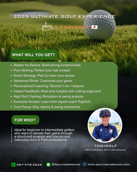 搜索关键词 Golf Training Thailand, Indoor Golf Academy, Improve Golf Swing, Golf Technology, Personalized Golf Coaching, Data Driven Golf, TogiGolf Experience, Golf Lesson Bangkok, AI Golf Analysis, Distance control putting优势 Personalized Coaching,Data-Driven Insights,Cutting-Edge Technology,Proven Results