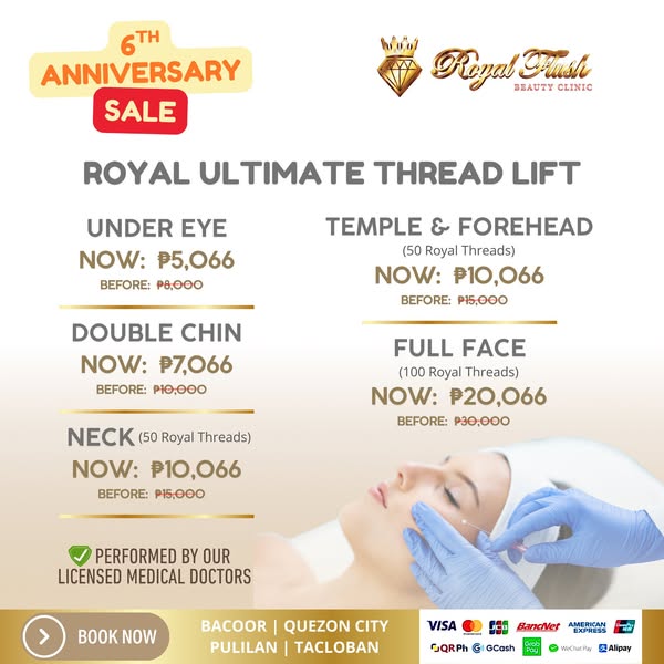 搜索关键词 beauty clinic, aesthetic services, medical doctor, anniversary offers, beauty treatments, Quezon City branch, Bacoor Cavite branch, royal transformation, experience royalty, skin rejuvenation优势 Exclusive anniversary offers,Luxury and pampering services,Performed by licensed medical doctors,Safe and efficacious procedures (when done by qualified professionals)