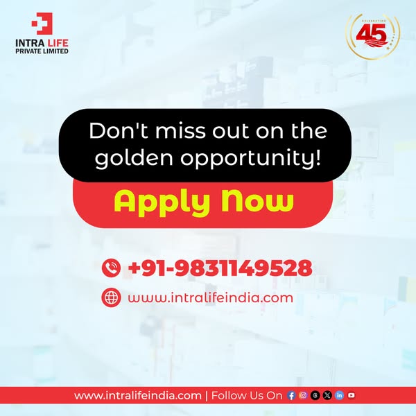 Limited slots available! Apply now and enjoy monopoly rights, wide product range & unmatched business support with Intralife.