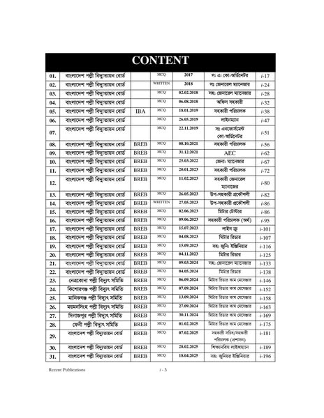* ২০১৭ সাল থেকে ১৮ এপ্রিল ২০২৫ পর্যন্ত বাংলাদেশ পল্লী বিদ্যুতায়ন বোর্ডের অনুষ্ঠিত পরীক্ষাসমূহের প্রশ্ন ও ব্যাখ্যাসহ সমাধান।
