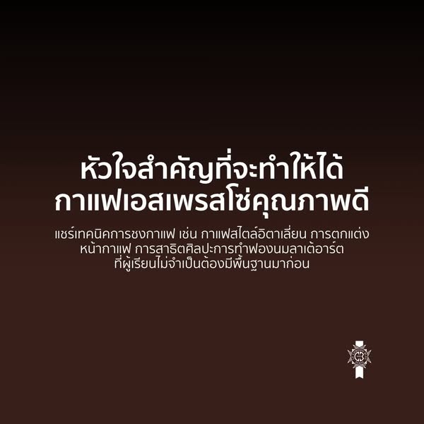 ✔ ผู้ที่ต้องการก้าวสู่การเป็นบาริสต้ามืออาชีพ