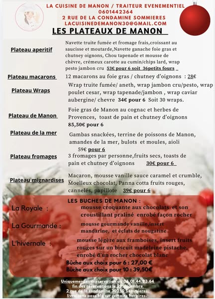 搜索关键词 Christmas food, New Year catering, holiday menu, france catering, sommiere food, festive meals, yule log order, christmas platter, new year menu, party catering优势 Festive Menus,Convenient Ordering,Delivery or Pickup Options