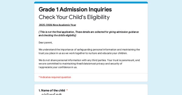 The registrations for Grade 1 are open for the 2025-2026 Academic Year - September Intake.he