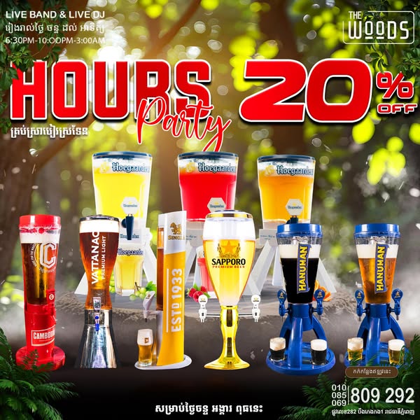 👉 បញ្ចុះតម្លៃ 20% សម្រាប់ស្រាបៀរសាទែន CAMBODIA, Vattanac Light, Singha, Sapporo, Hanuman និង Hoegaarden