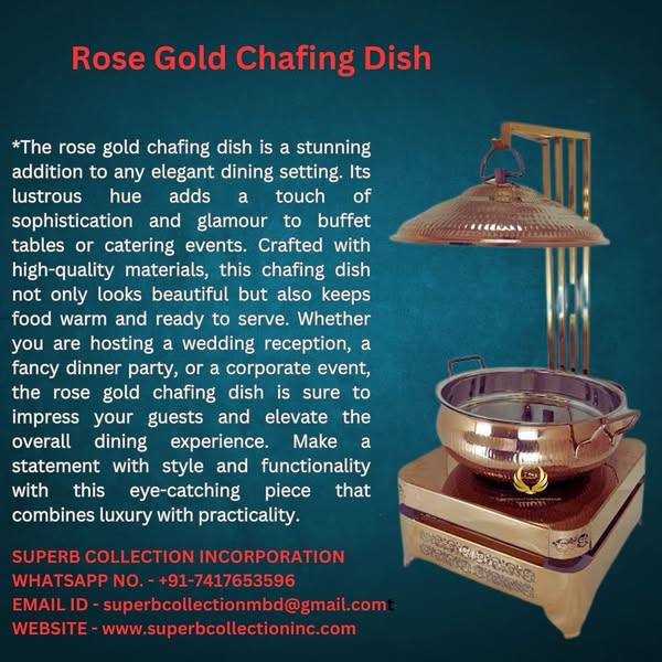 搜索关键词 chafing dish, food warmer, buffet equipment, catering supplies, party serving, restaurant equipment, stainless steel chafing dish, food service, food display, buffet catering优势 Keeps food warm,Elegant presentation,Suitable for buffet service